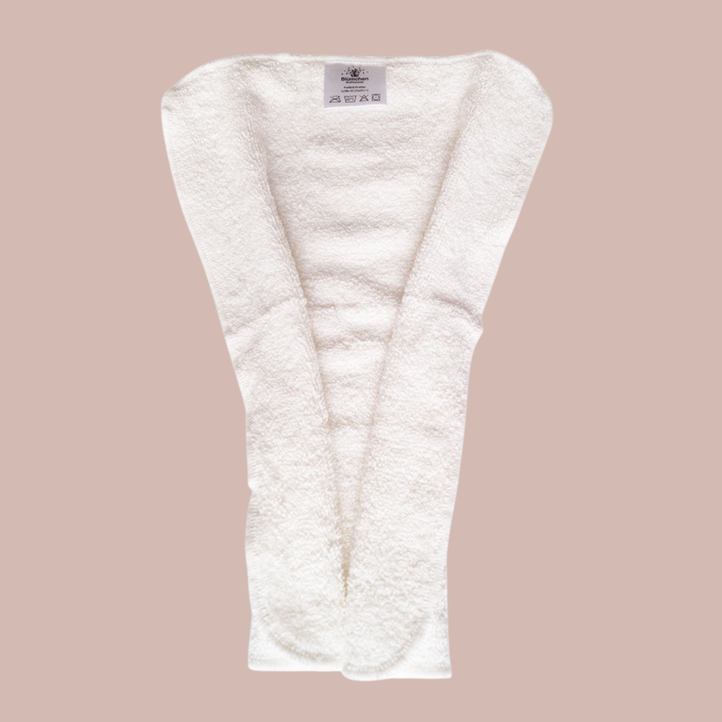 Der hohe Anteil an 70% Bambusviskose sorgt für aussergewöhnliche Saugkraft und ein angenehm weiches Tragegefühl. Dank der kompakten, formfesten Qualität tragen die Prefolds dabei kaum auf. Besonders praktisch: Der dicht gewebte Frottee fängt flüssigen Muttermilchstuhl zuverlässig auf, ohne dass er sich rasch in der gesamten Überhose verteilt. Die Prefolds lassen sich flexibel verwenden – als gefaltete Einlage oder direkt ums Kind gewickelt und mit einem Snappi (Windelklammer) fixiert.
