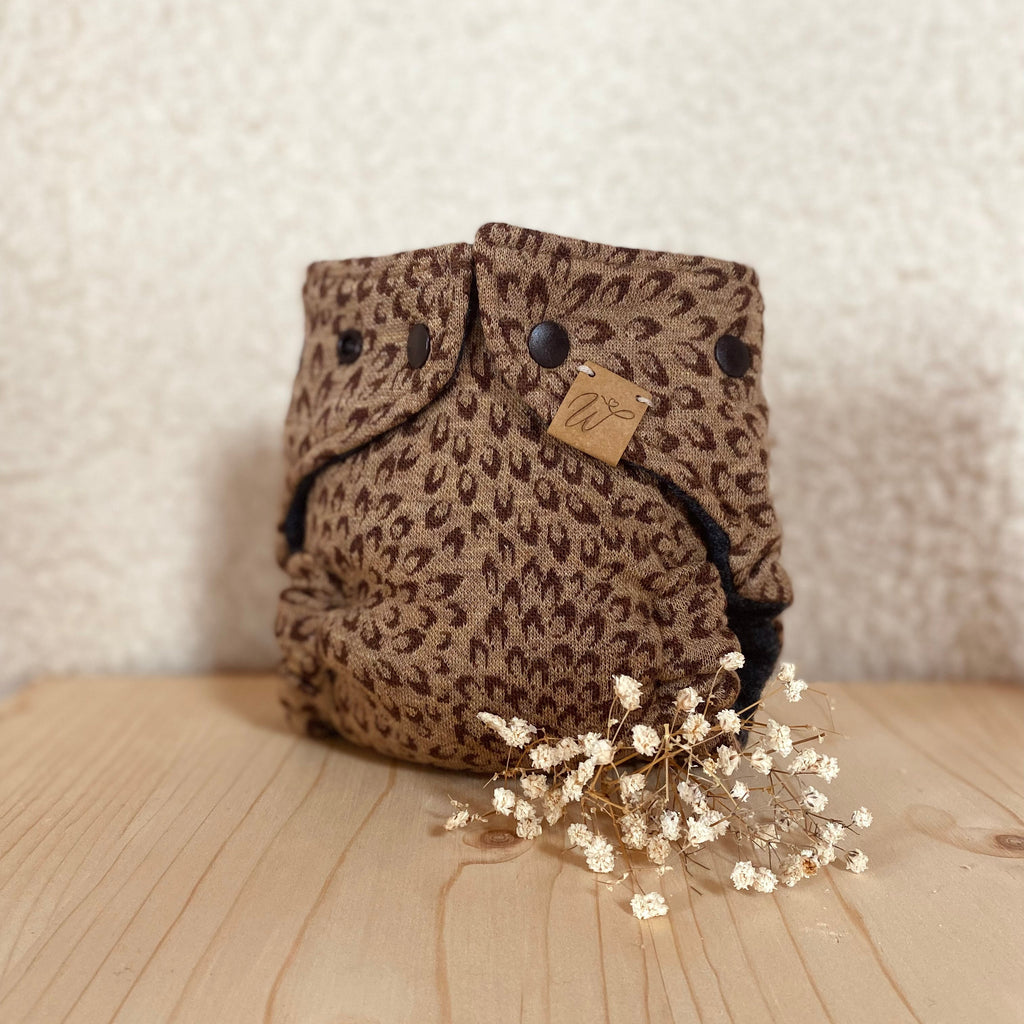 Der weiche und dichte Innenstoff aus Bio-Merinowolle wird in Deutschland gestrickt. Die Wolle stammt aus biologischer und mulesingfreier Tierhaltung. Der Aussenstoff dieser Windel ist in ÖkoTex-Qualität und stammt aus mulesingfreier Tierhaltung.