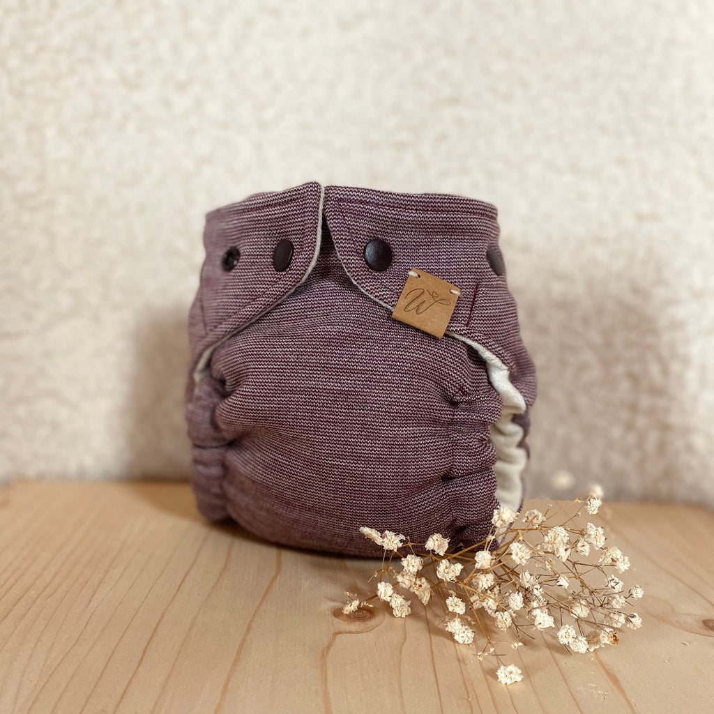 Der weiche und dichte Innenstoff aus Bio-Merinowolle wird in Deutschland gestrickt. Die Wolle stammt aus biologischer und mulesingfreier Tierhaltung. Auch der Aussenstoff dieser Windel ist in Bio-Qualität und stammt ebenfalls aus mulesingfreier Tierhaltung.